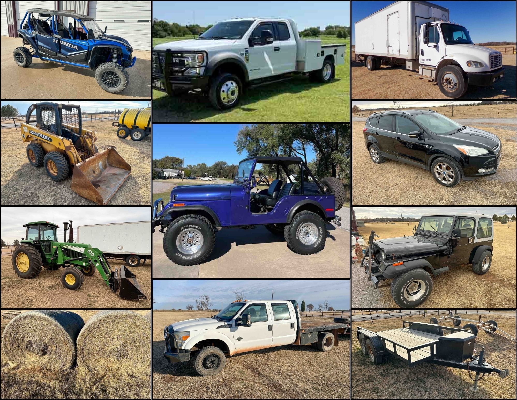 2/18 JD Tractor - Vehicles - Pick ups - Swather - Hay - Livestock Trailer - Truck - Freightliner - CAT Generator - Skid Steer - Snowmobile - Honda UTV