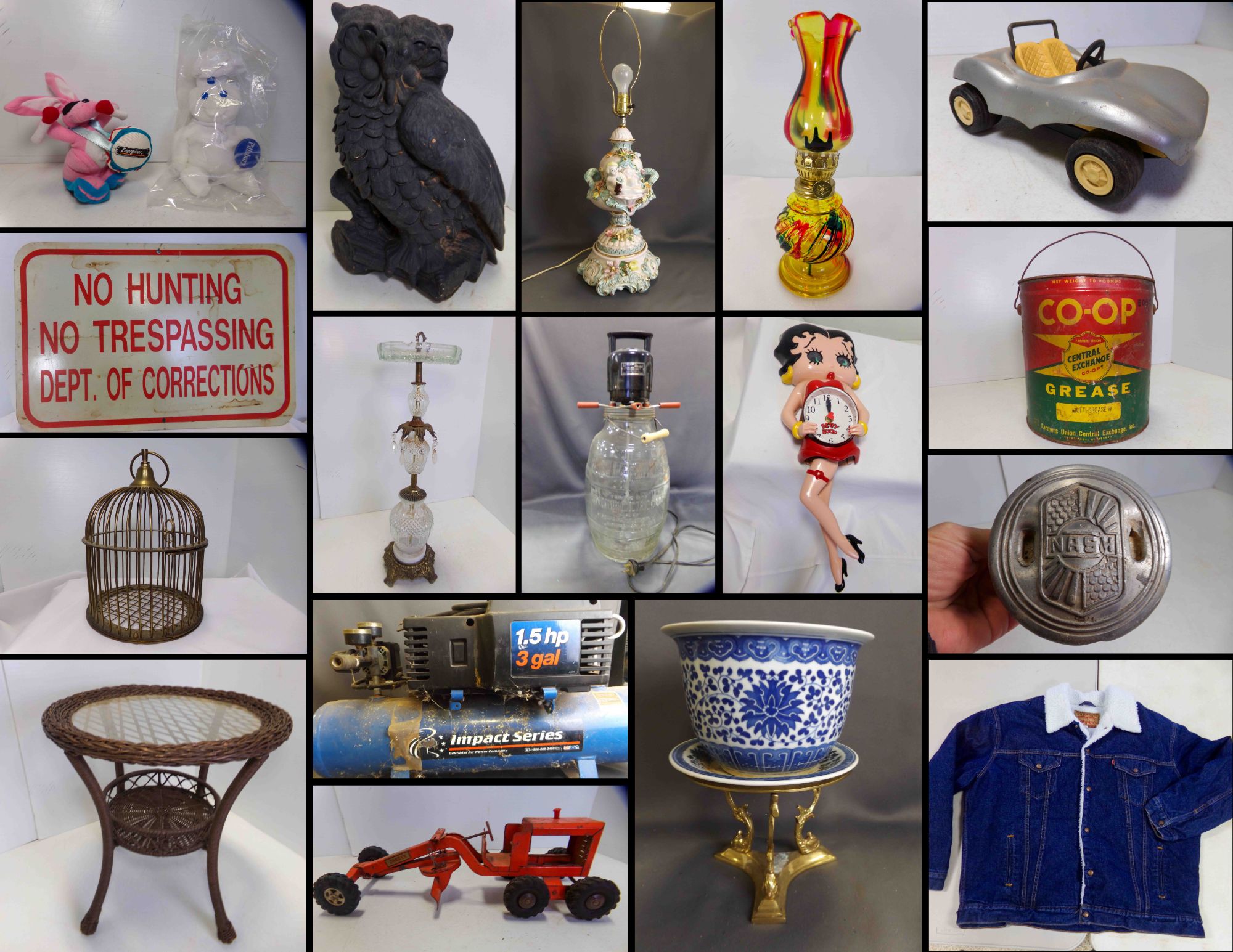 4/12 Vintage & Antiques – Signage – Ash Trays – Tupperware – Oil Cans – Toys – Tools & Auto Parts – Wood Crates – Levi’s – Trucker – Jackets