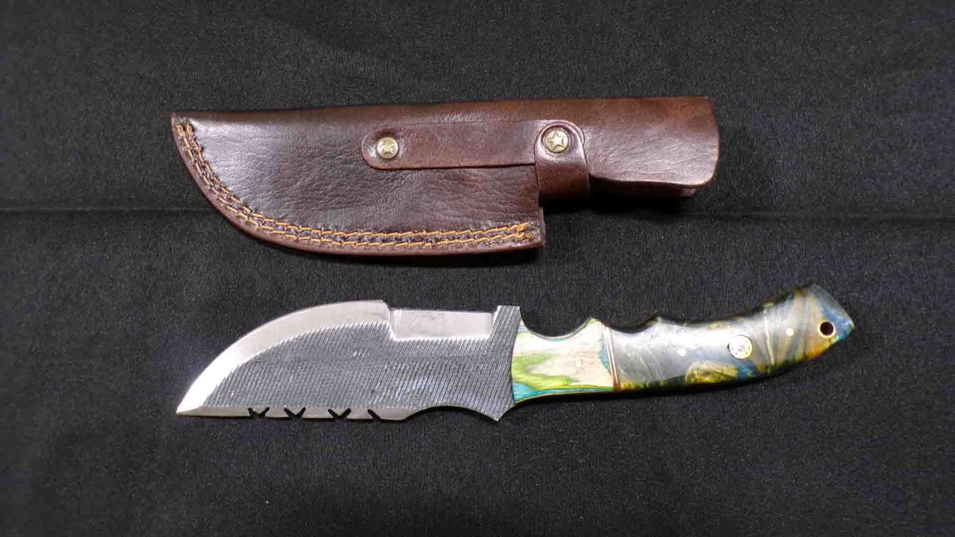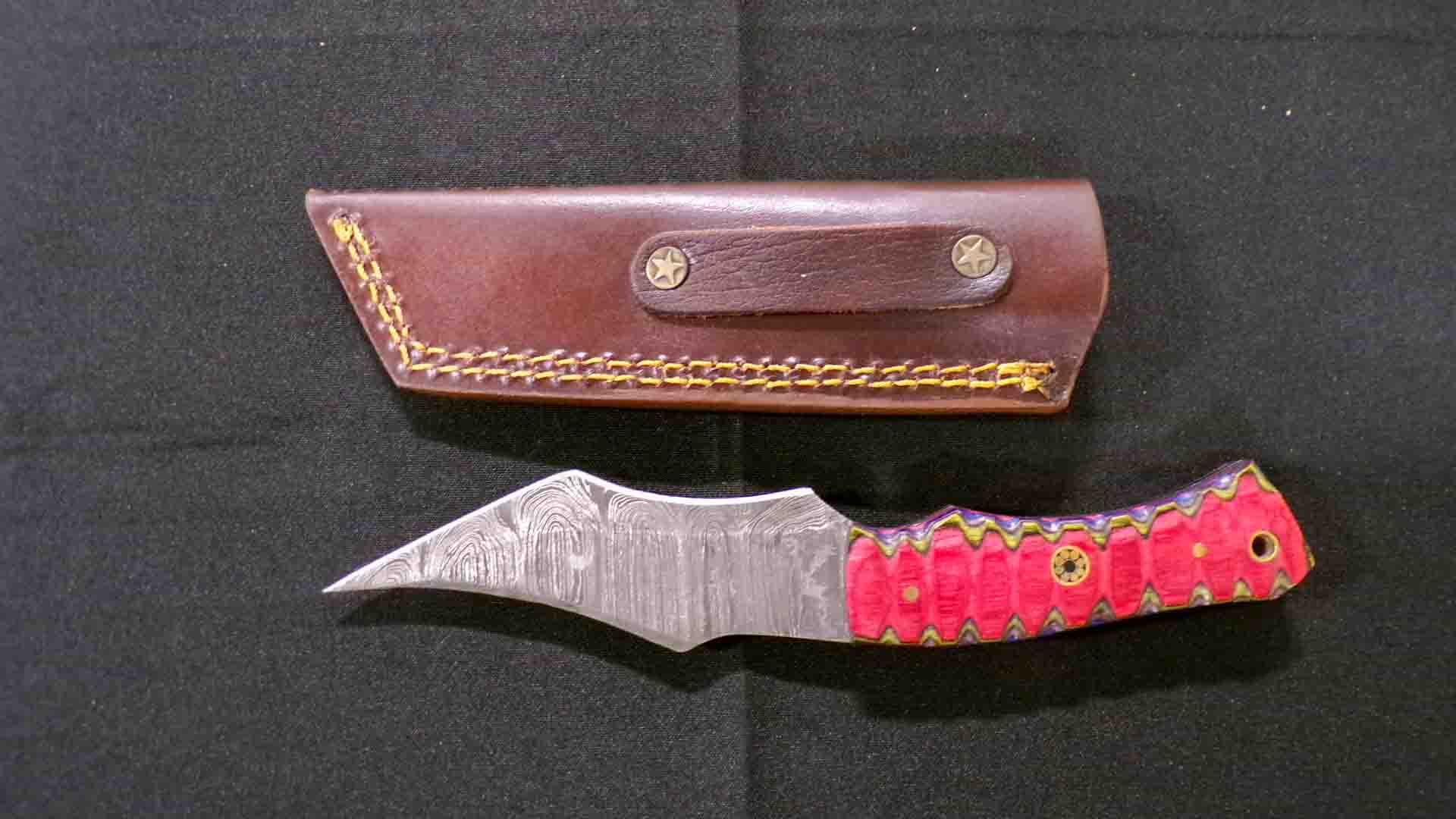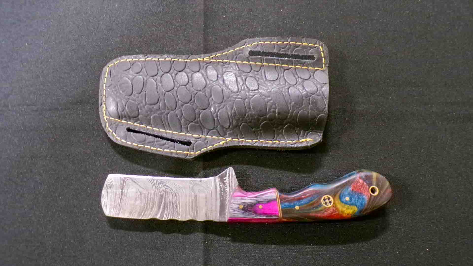 4/27 Damascus Steel – Pocket Knives – Cleavers – Serrated Blades- Daggers – Ulu – Key Chain Knives – Fixed Blades – Leather Sheaths